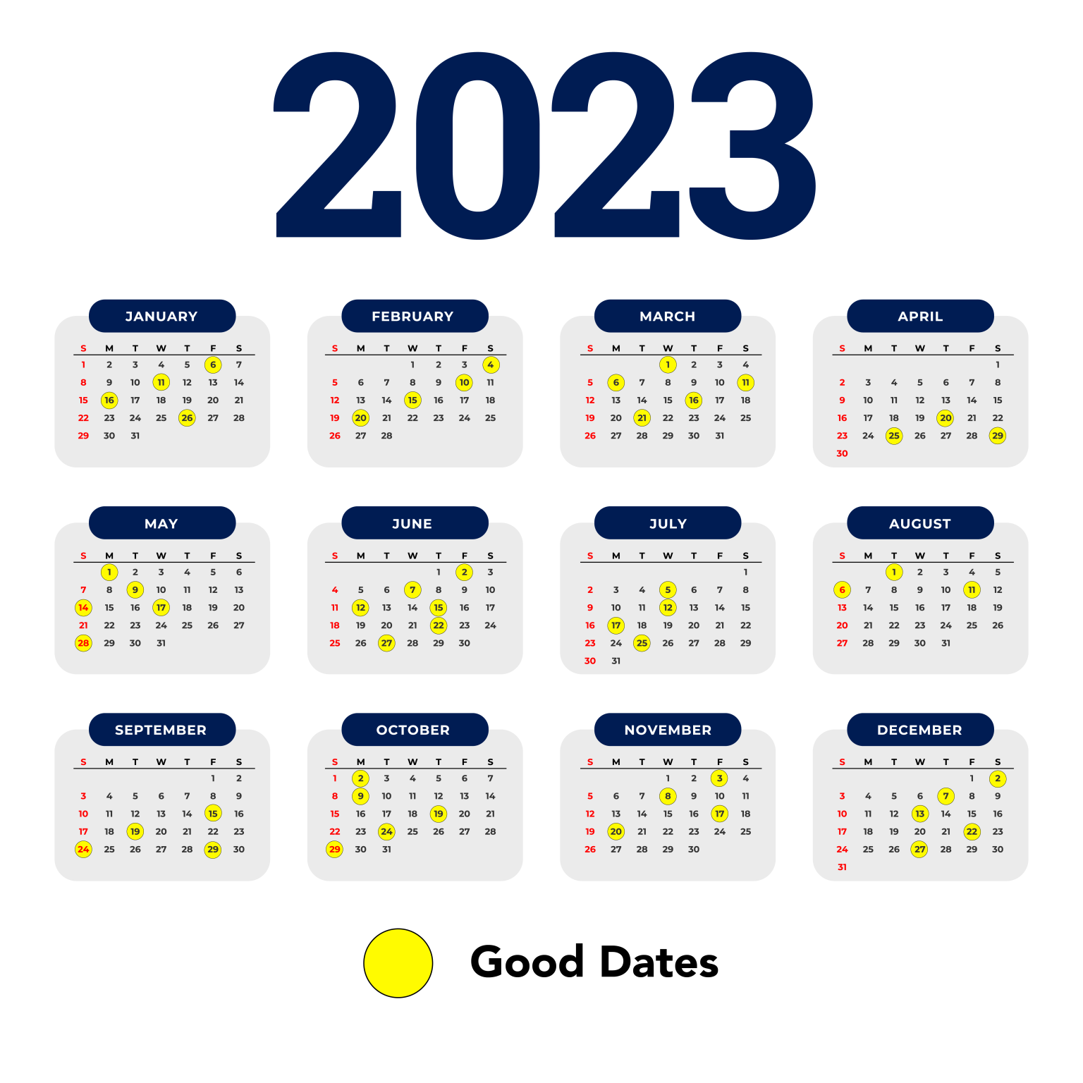 Calendar Good Day To Start / Open Own Business After The Chinese New Year26/01/2023 THURSDAYUshering In the God Of Prosperity (“Chiap Chai Sinh Eah / Chip Choy Sun Yeh”)21/01/2023 SATURDAYPraying To The Jade Emperor (“Pye Thih Sinh” / “Pye Thinh Sinh”)29/01/2023 SUNDAYTo Request For “Good Luck Pendant” @ RM 10 Each30/01/2023 – 05/02/2023SUKMAD Day30/04/2023 SUNDAYSUKMAD Festival16/12/2023 SATURDAY